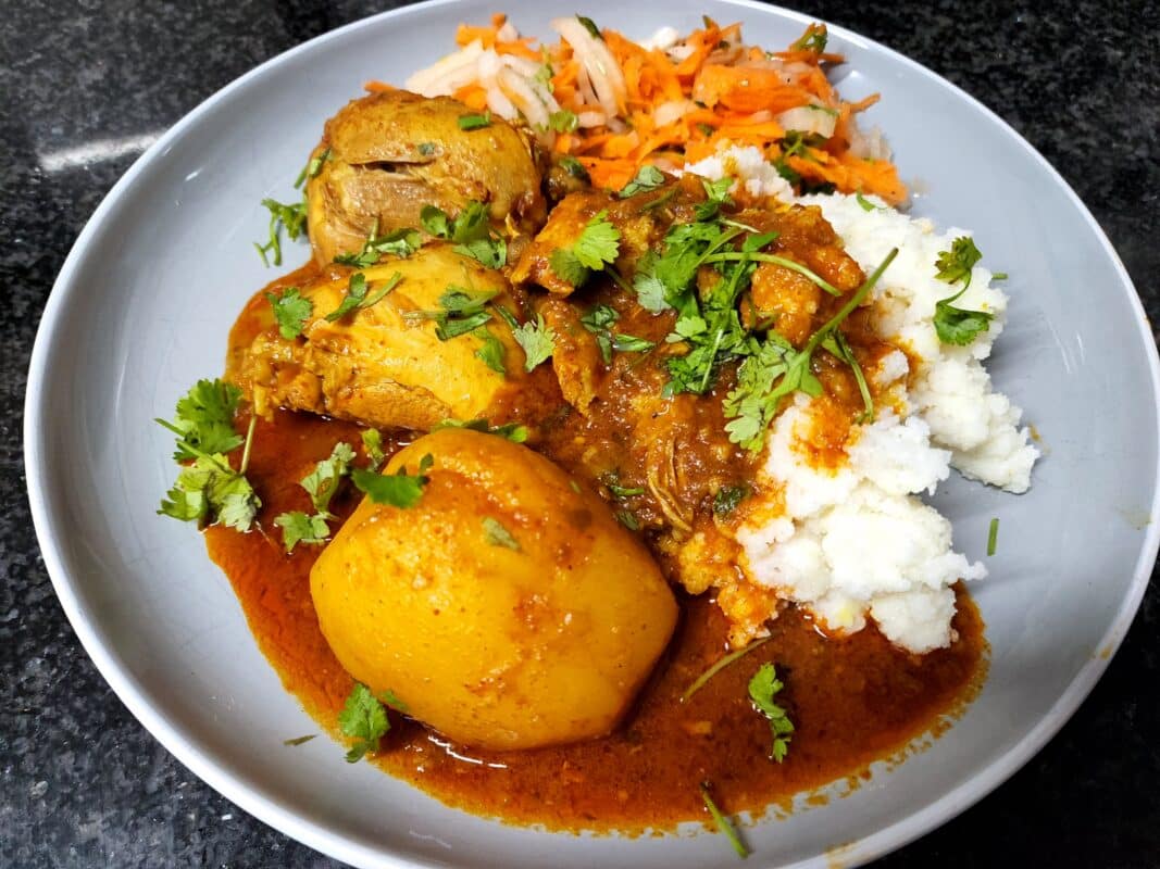 Keywords: Durban Curry, Durban Chicken Curry, Pap, Carrot Salad